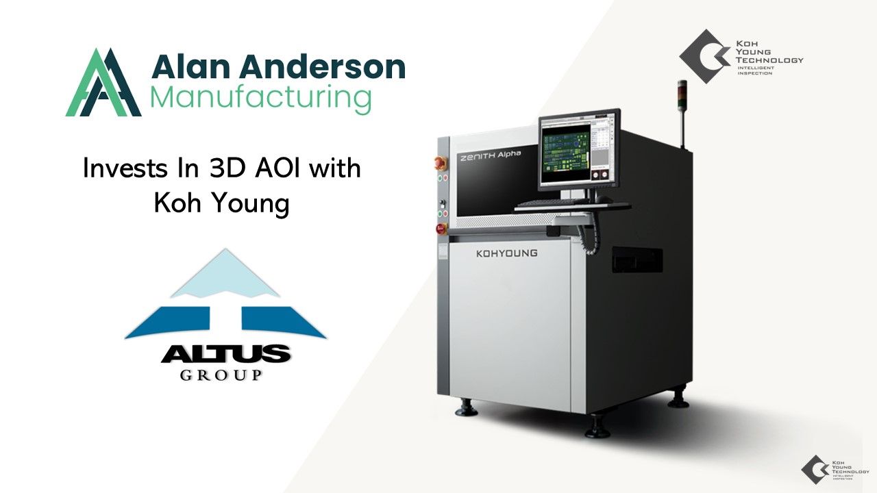 Altus Group, a leading distributor of electronics manufacturing equipment in the UK and Ireland, has supplied Alan Anderson Manufacturing, a growing electronic manufacturing services provider, with a state-of-the-art 3D Automated Optical Inspection (AOI) system. This advanced solution is designed to align with their increasing production needs, enhancing inspection precision, streamlining efficiency, and further strengthening their commitment to quality control. As AA Manufacturing’s operations have grown significantly, they recognised the need for more advanced inspection technology to keep up with the increasing complexity of their products. After consulting with Altus for expert guidance, they decided to invest in the Koh Young Zenith Alpha HS+ 3D AOI system. While their previous system, a benchtop AOI had performed well, this new system allows them to meet the higher demands for inspection precision and efficiency, ensuring their continued commitment to the highest level of quality control while streamlining production processes and ultimately increasing capability. Phil Bray, Managing Director at Alan Anderson Manufacturing, said: "The reputation of Koh Young and Altus in the market is clearly outstanding; a glance at their recent news and extensive partner list confirms they are a stand out in the technology. For us, the decision to invest in the market’s leading 3D AOI solution is driven by a commitment to quality, not simply to catch non-conformities, but to equip our team with the tools needed to measure deviations from perfection and ultimately drive yield improvements. Our customer expect best in class, and that is what we are committed to deliver." The Koh Young Zenith Alpha HS+ offers fully automated 3D inspection with advanced features such as high-speed processing and precise SPC analysis, providing 100% inspection coverage up to 25mm in full 3D metrology. It ensures micron-level precision across all components, while integrated KSMART software enables real-time data analysis, helping optimize production processes and improve yield. Joe Booth, CEO of Altus Group, commented, “Alan Anderson Manufacturing is a dynamic company making smart investments to drive growth and have taken the market by storm over the last years. We’re very pleased to support them with another successful project and their new 3D AOI solution, which will no doubt strengthen their offering to their customers, and position in the UK CEM market.” With this cutting-edge inspection technology in place, Alan Anderson Manufacturing is now well-positioned to scale its operations while maintaining its commitment to exceptional quality control standards. www.altusgroup.co.uk.
